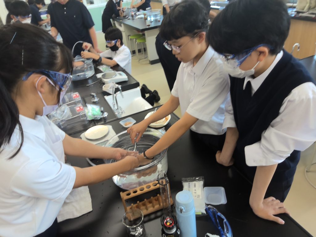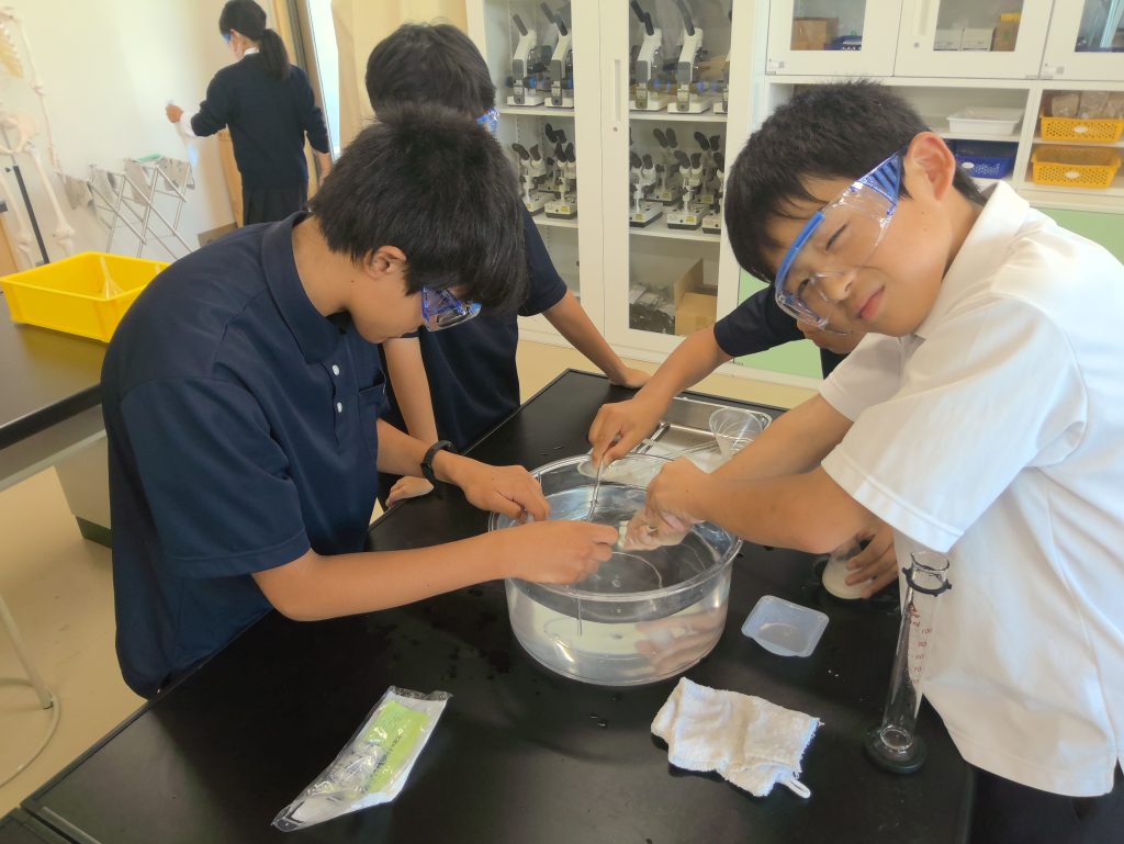お知らせ 理科の授業(10月8日) 2025年10月8日 身の回りの物を使ってどんな気体が発生するのかについて実験で調べていました。どんな気体が発生したのかを明らかにする方法も今まで学んだことを思い出しながら、自分たちで考えたそうです。 ※なお、安全には十分配慮して行っていますので、ご安心ください。