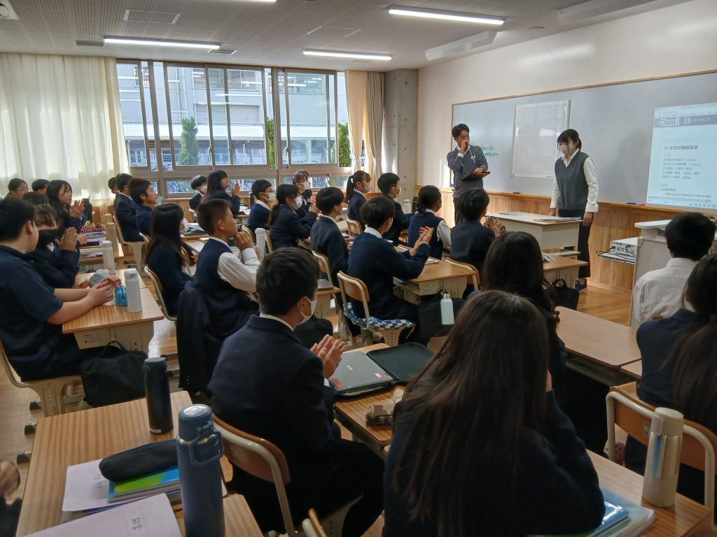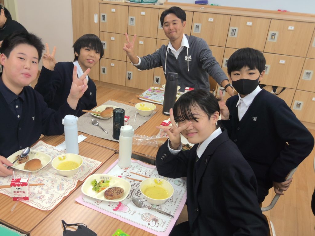 お知らせ 異校種交流(11月11日) 2025年11月11日 半田高校の先生が、1日中学校で過ごしました。授業を参観してもらったり、一緒に給食を食べたりしながら交流を深めました。数年後、高校の授業で会えるのが楽しみですね。