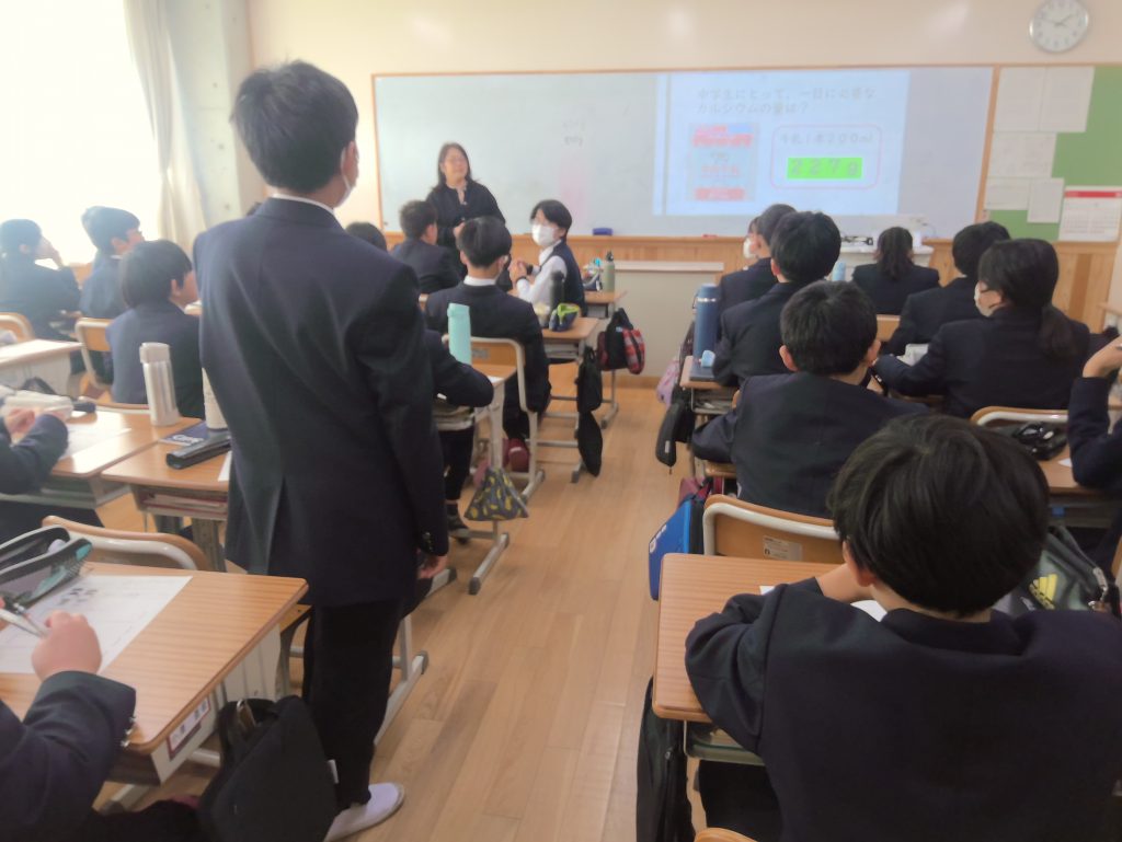 栄養教諭による栄養指導が行われました。食品に含まれるカルシウムの量やカルシウムの働きについて考えることができました。