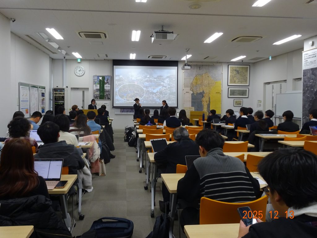 半田高校の生徒と名古屋大学留学生が、防災についての発表をお互いに英語で行いました。希望する中学生も名古屋大学にでかけてこのロジカルプレゼンテーション講座を体験しました。