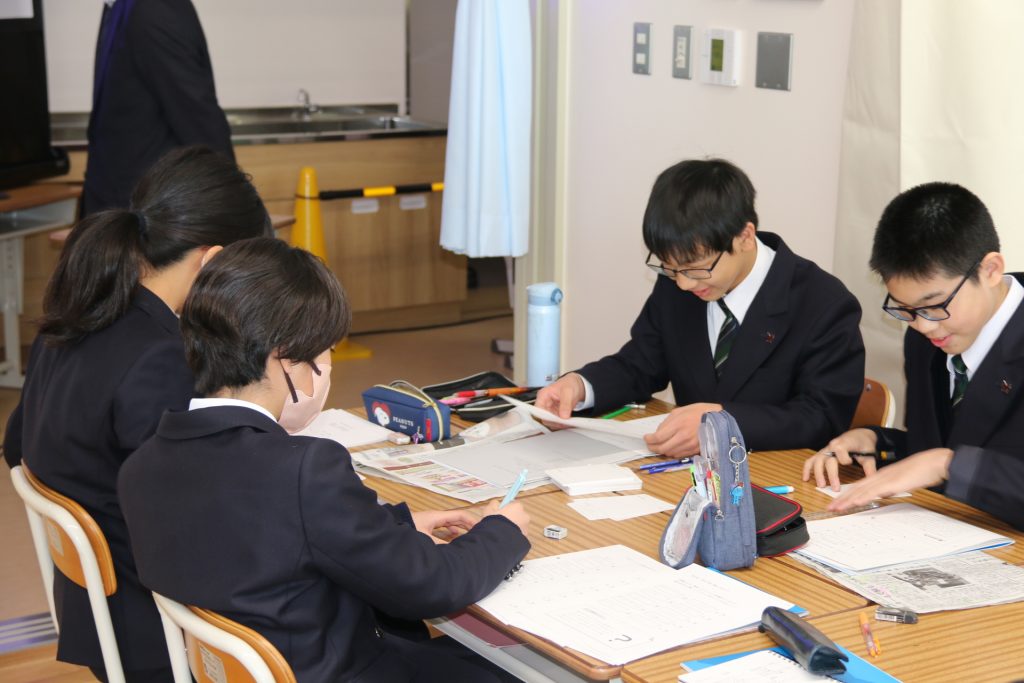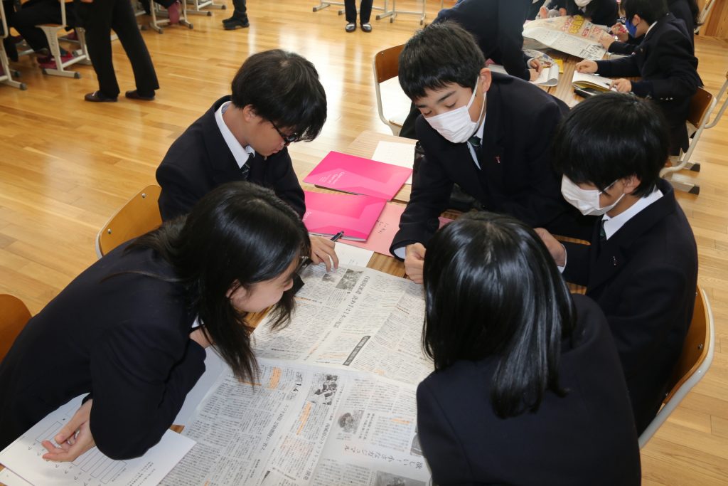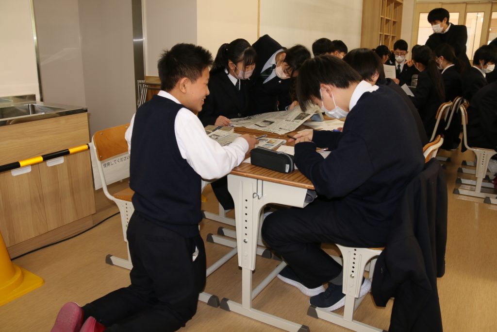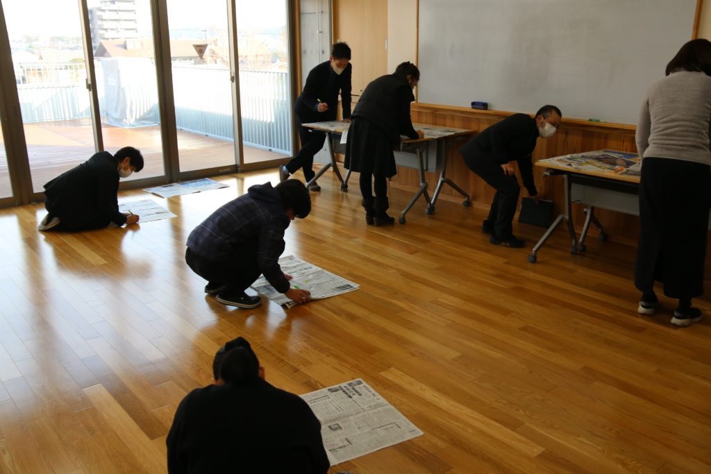 本日の新聞を使って、気になるワードと組み合わせる活動もしました。新聞は、事前に先生たちが気になったワードにマーカーで目印をつけたものを利用しました。(頑張って準備している写真もお楽しみください)