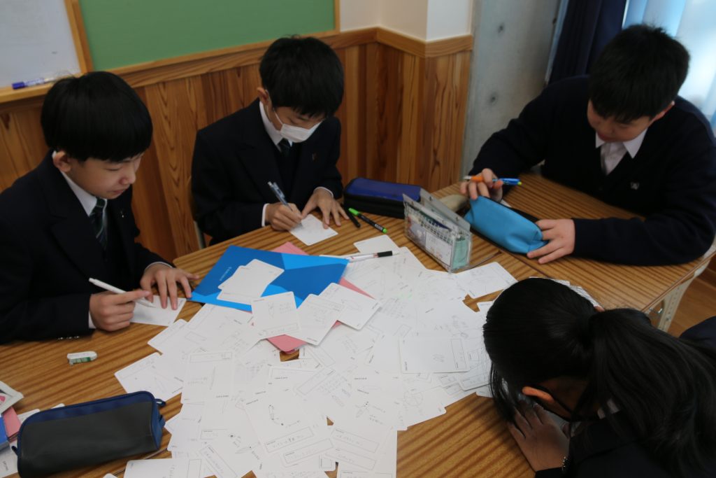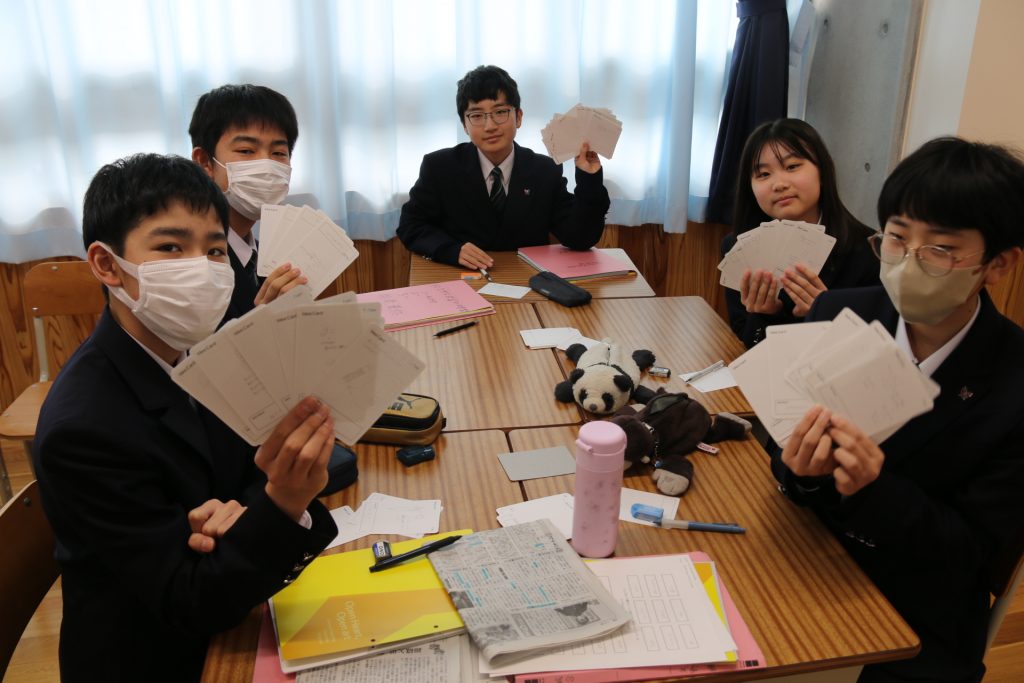 先週に引き続き、ワークを使ってのアントレプレナーシップ教育です。まずは、POPをたくさん出し合って、チームで決めた文房具と組み合わせる活動をしました。