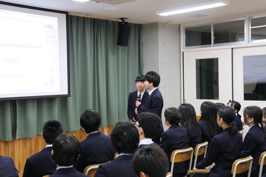 βとγクラスは、英文をみんなの見ている前で読むという活動をしていました。この緊張感を味わった生徒は、いつもの数倍の学びがあったと思います。ナイスチャレンジ!