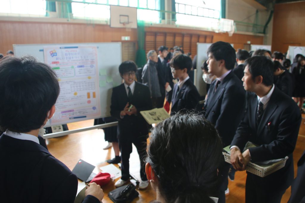「他人事」ではなく、自分の興味関心による探究だからこそ、自分の言葉で力強く伝えられたのだと思います。発表者、観覧者のどちらにとってもよい経験になりました。