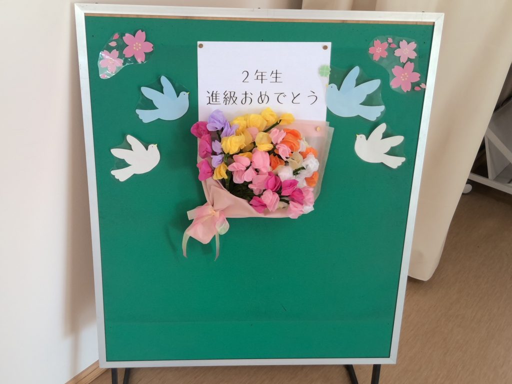 一生懸命に床を磨く姿や、新入生の喜ぶ顔を想像しながら教室の飾り付けをする姿がとても印象的でした。「先輩」としての自覚が芽生え始めているのを感じ、非常に頼もしく思います。