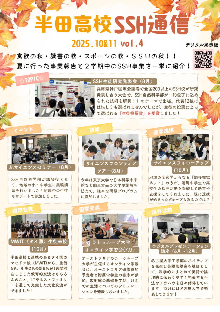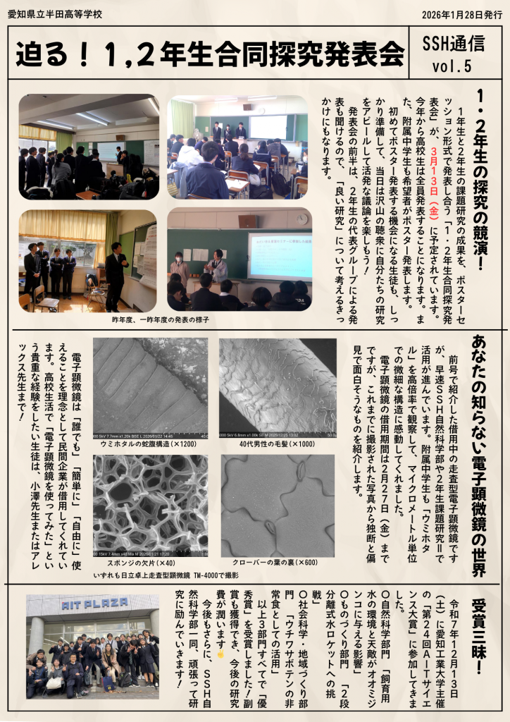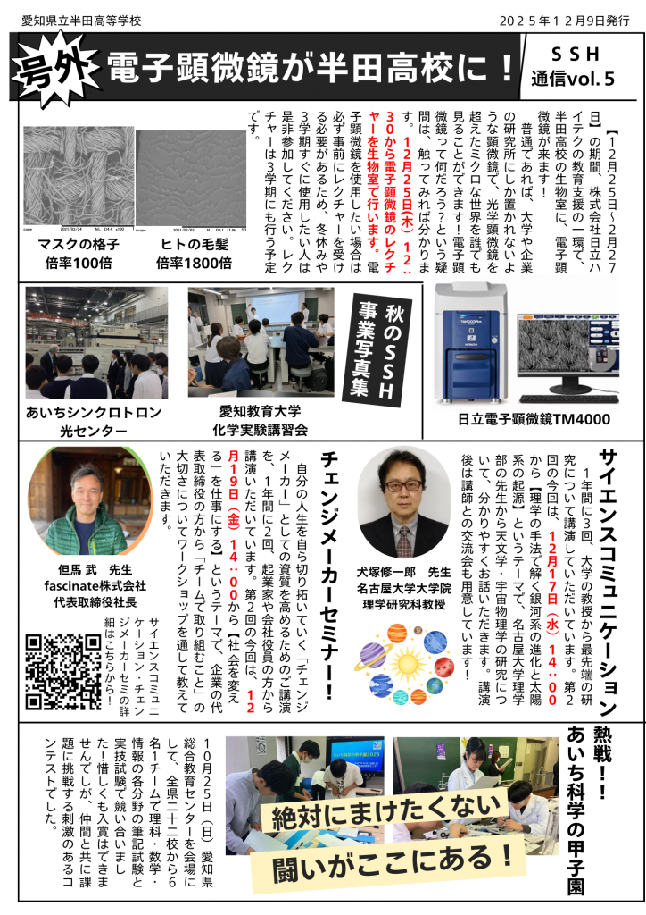 SSH通信は、半田高校のSSH広報誌です。SSH事業を紹介していきます。